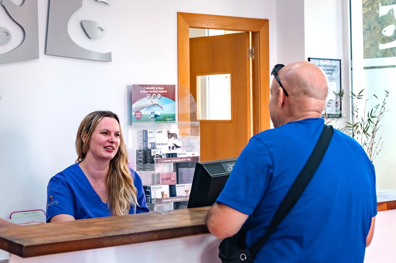 - Recepción: Espacio amplio, luminoso y acogedor con zonas de espera separadas para perros y gatos, reduciendo el estrés en los pacientes felinos antes de su consulta.