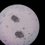 En este caso hablamos de Cheyletiella parasitovorax común en conejos. Puede estar presente en conejos sanos, hasta que prolifera y se instaura la enfermedad.